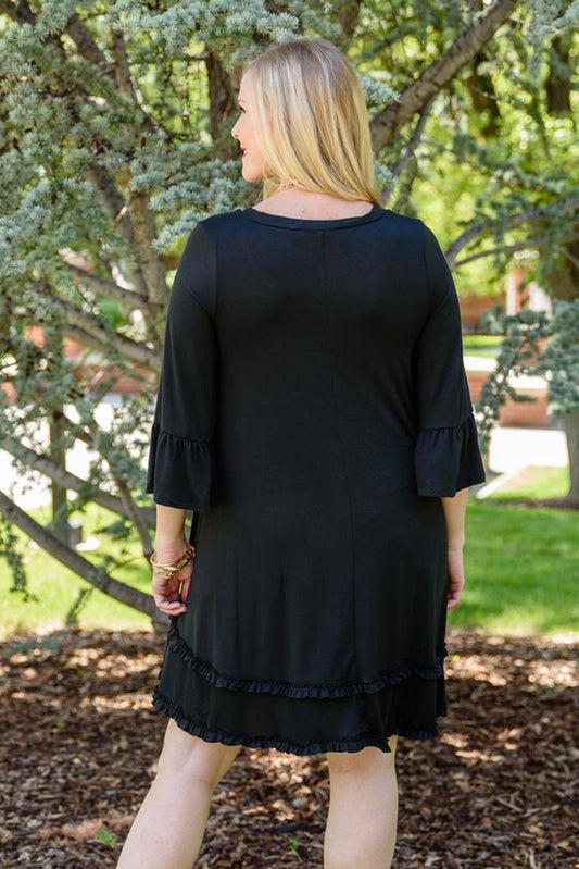Black Plus Size Ruffled Trim 3/4 Sleeve DressRegular price $27.94Regular priceUnit price per-