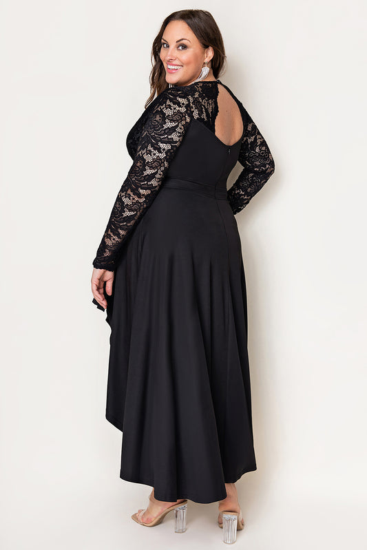 Black Plus Size High-Low Lace Contrast Evening DressRegular price $48.68Regular priceUnit price per-