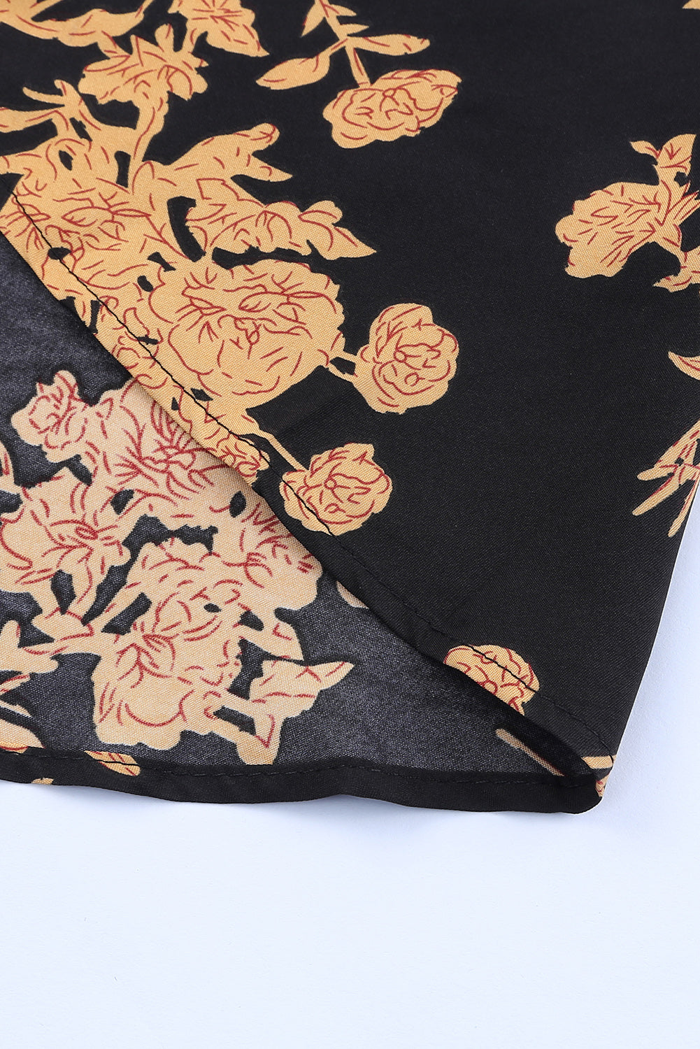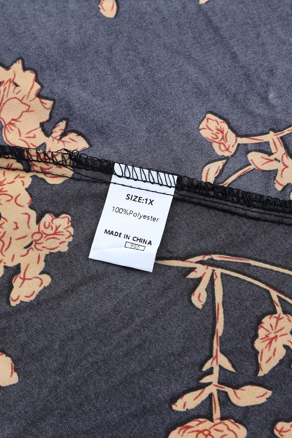 Black Plus Size Cut-out Neckline Long Sleeve Floral Dress