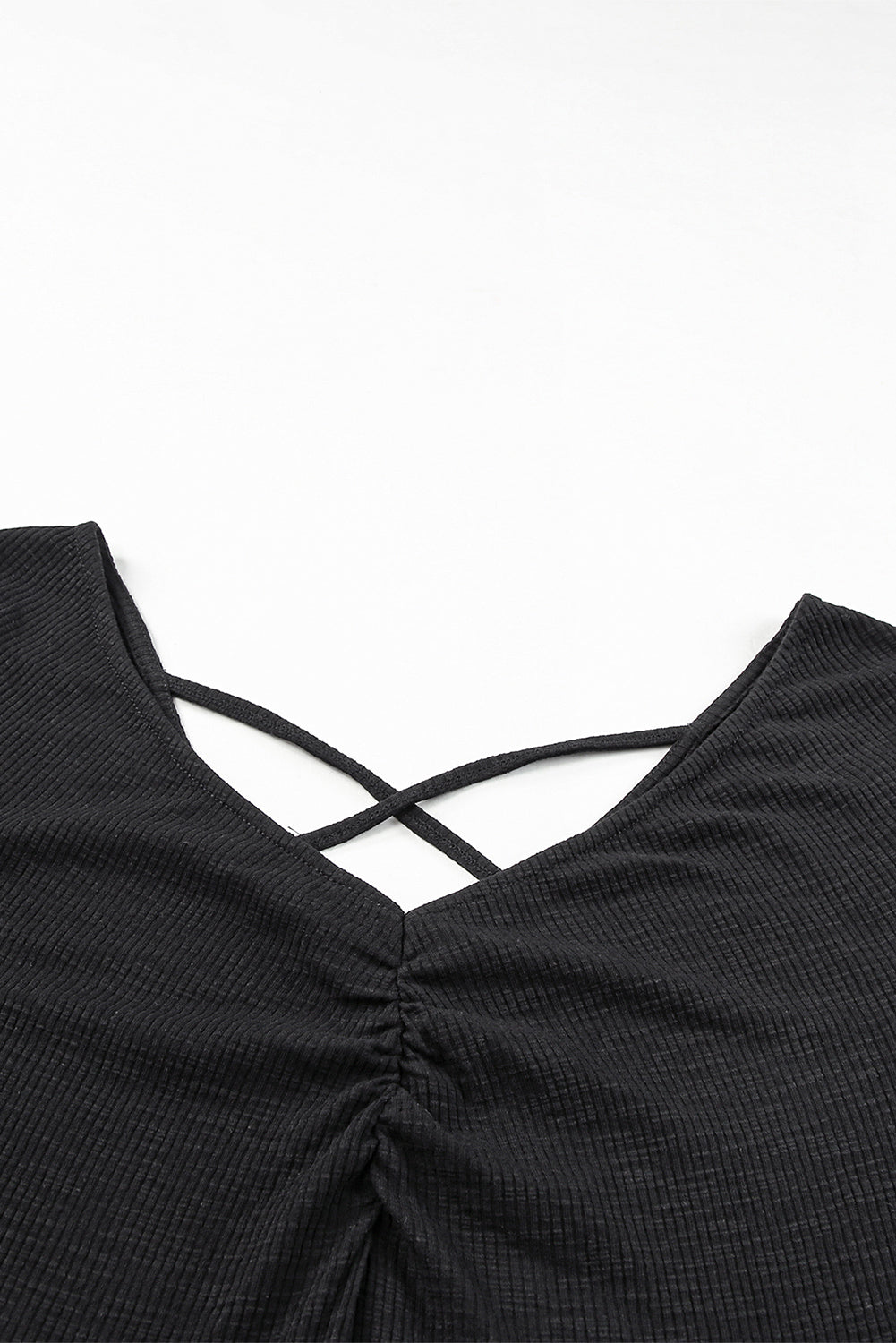Black Plus Size Ruched Sweetheart Fit and Flare Midi Dress