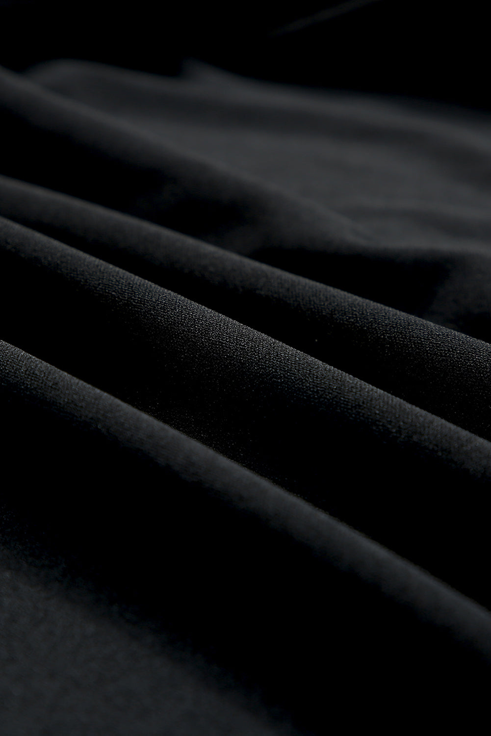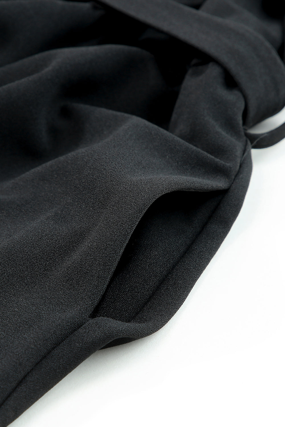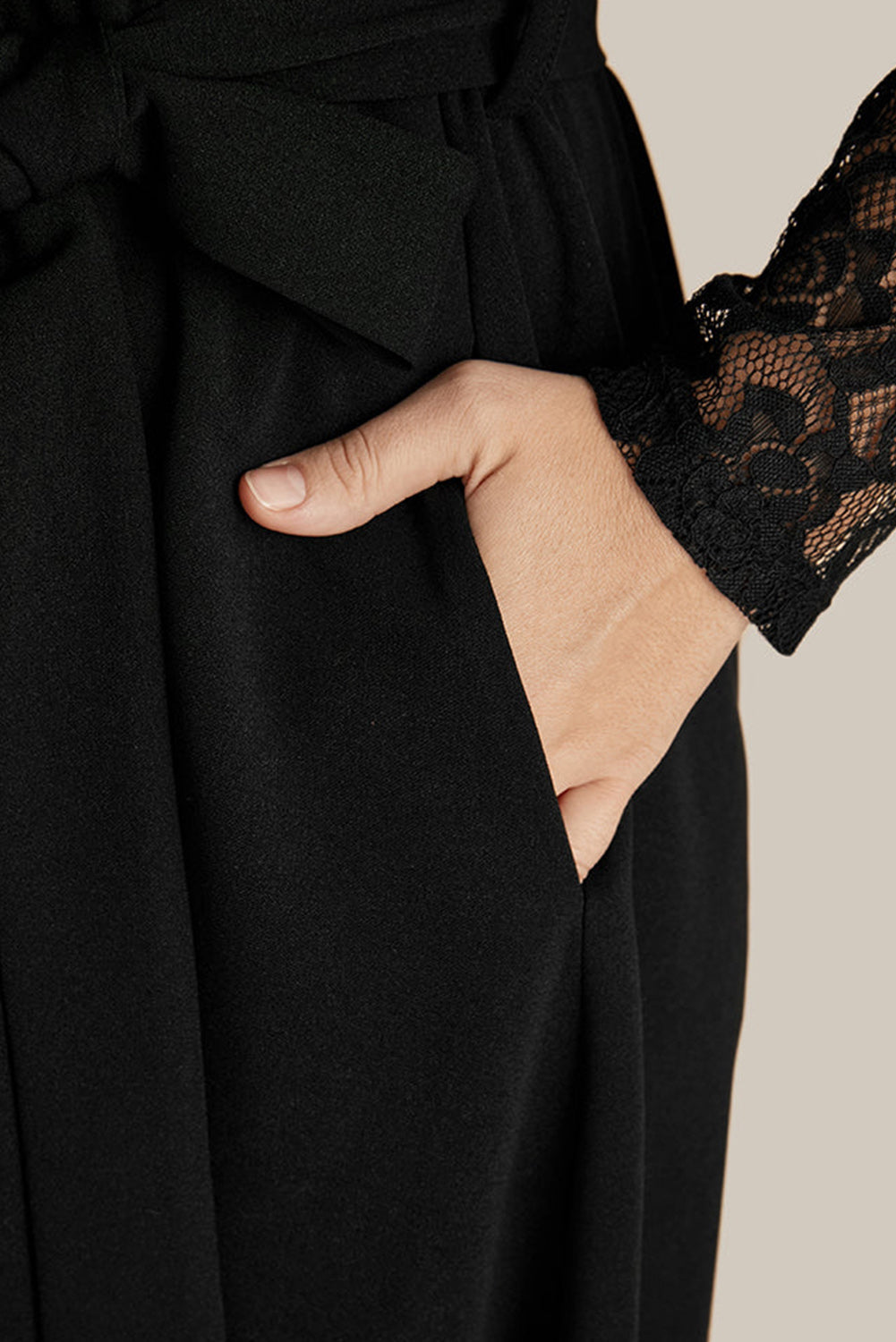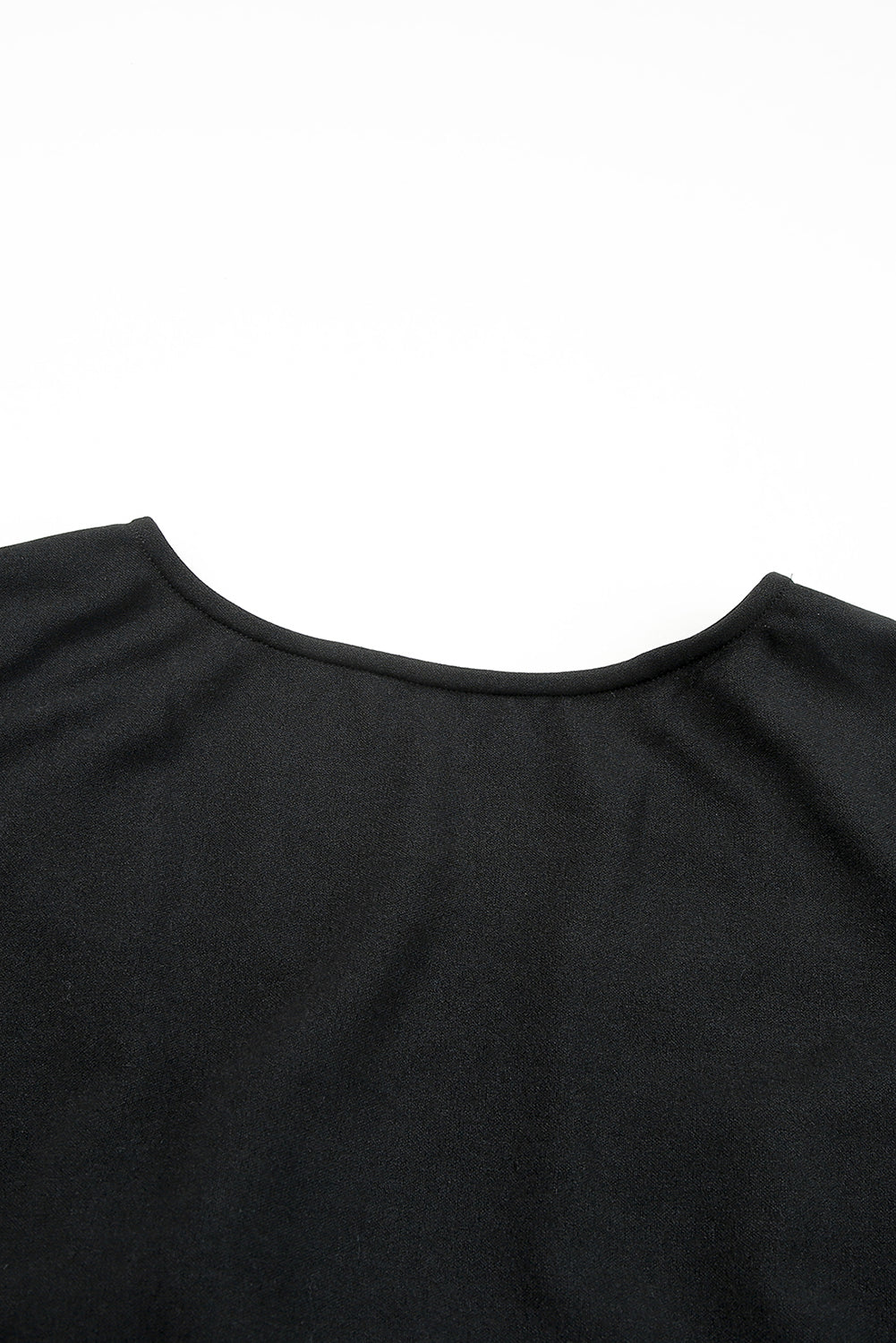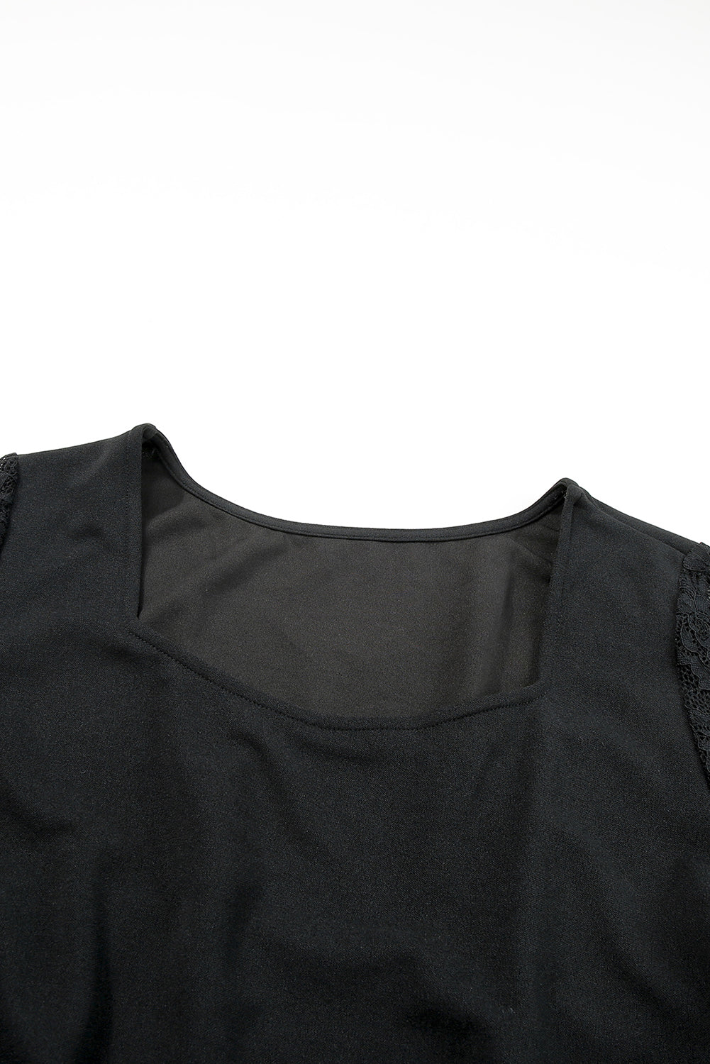 Black Plus Size Sheer Lace Sleeve Belted Ruffle Midi Dress