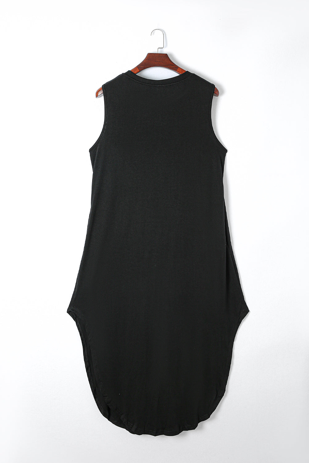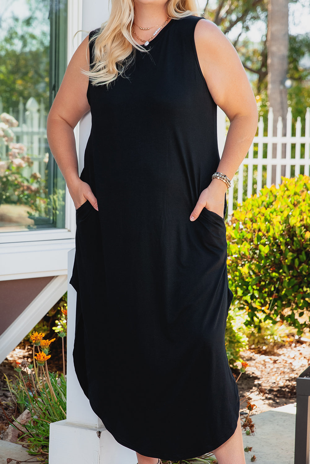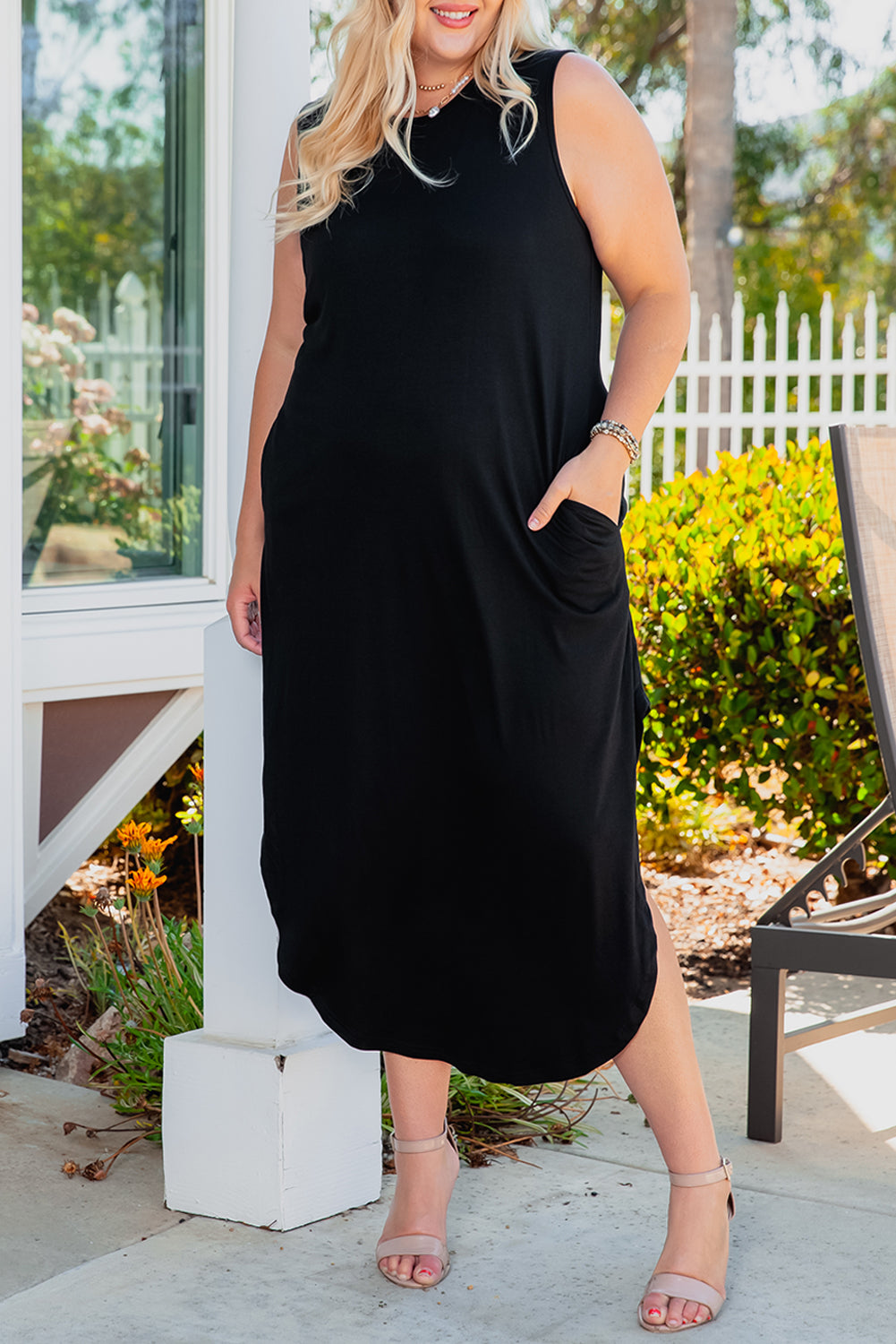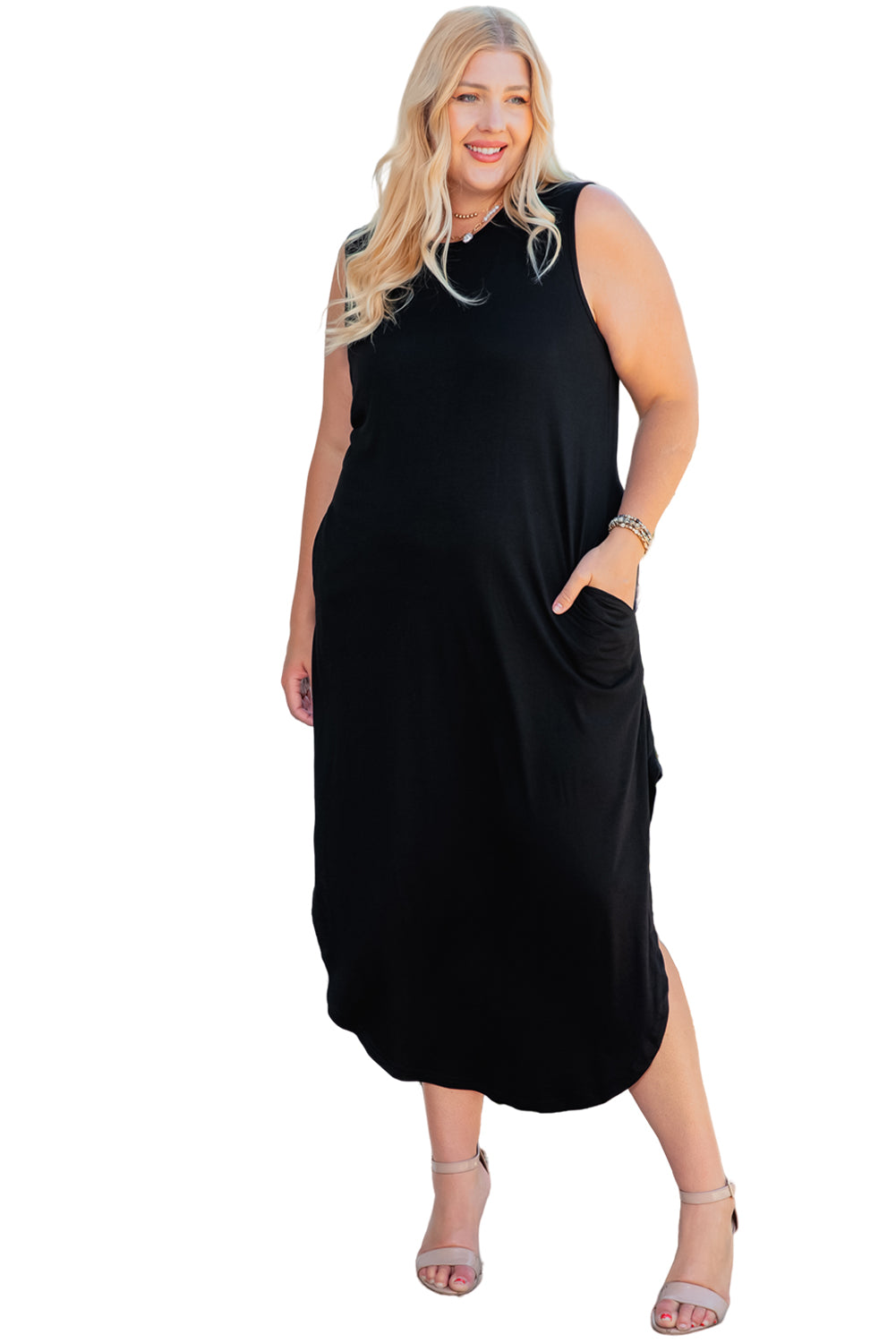 Black Plus Size Wide Sleeveless Shoulder Straps Maxi Dress