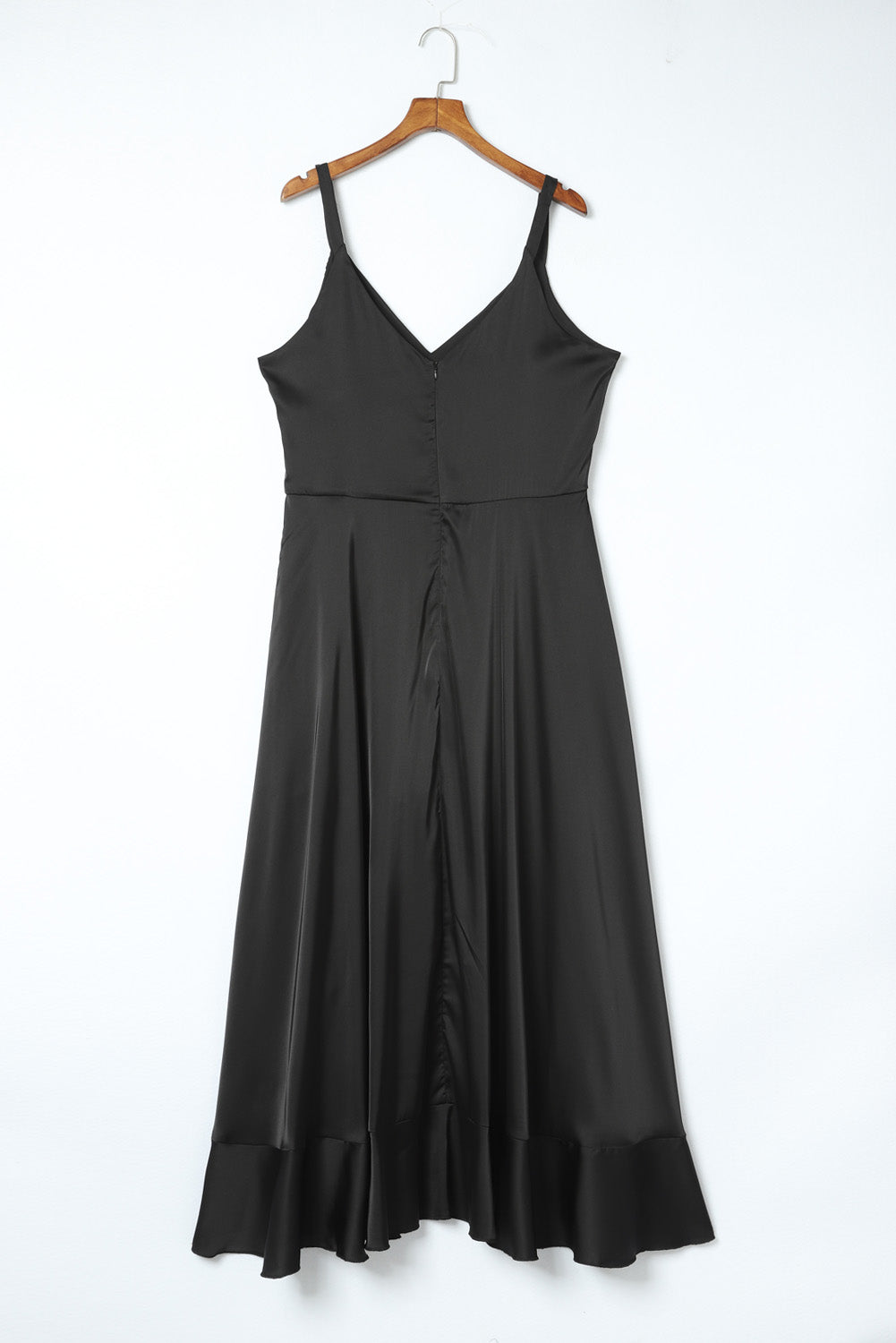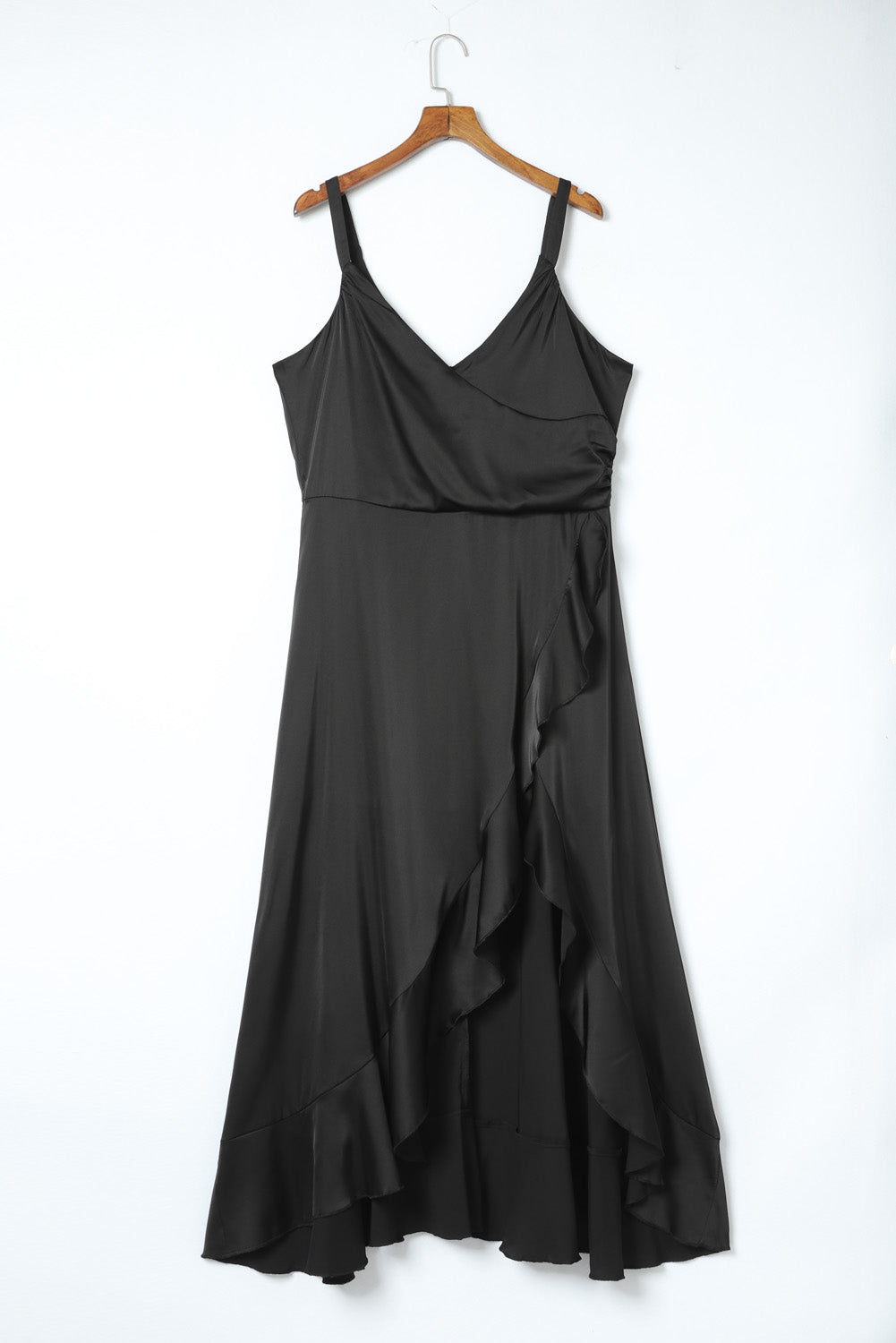 - Experience the perfect blend of elegance and sexiness with our Ruffled Thigh High Slit Sleeveless Plus Size Evening Dress