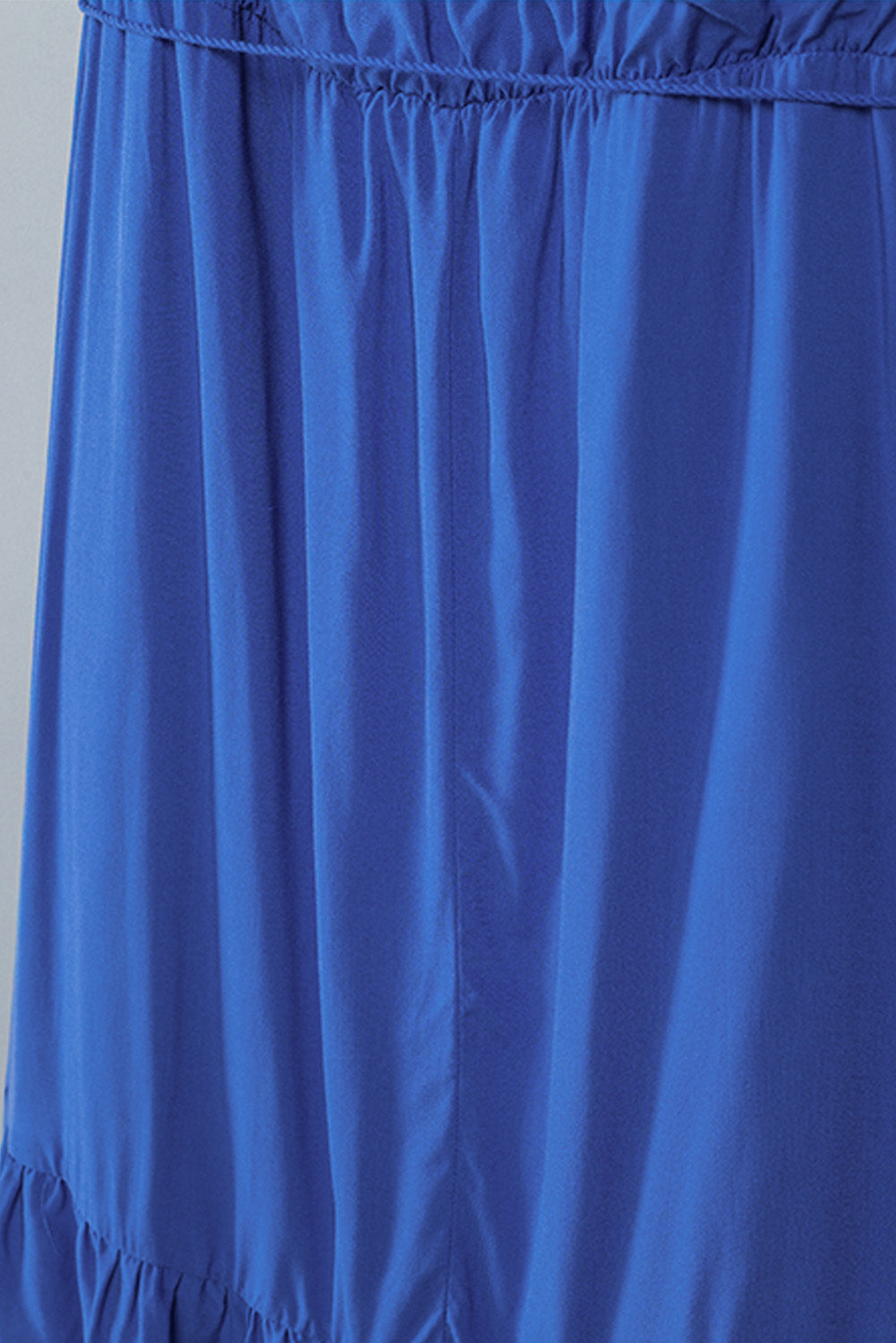 Blue Off-the-shoulder Lace Sleeves Plus size Dress
