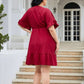 Plus Size Ruched Surplice Flounce Sleeve Mini Dress