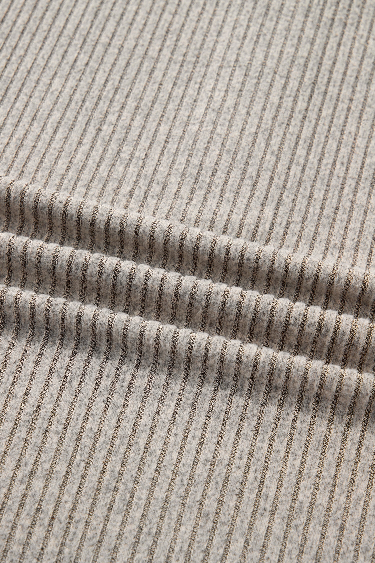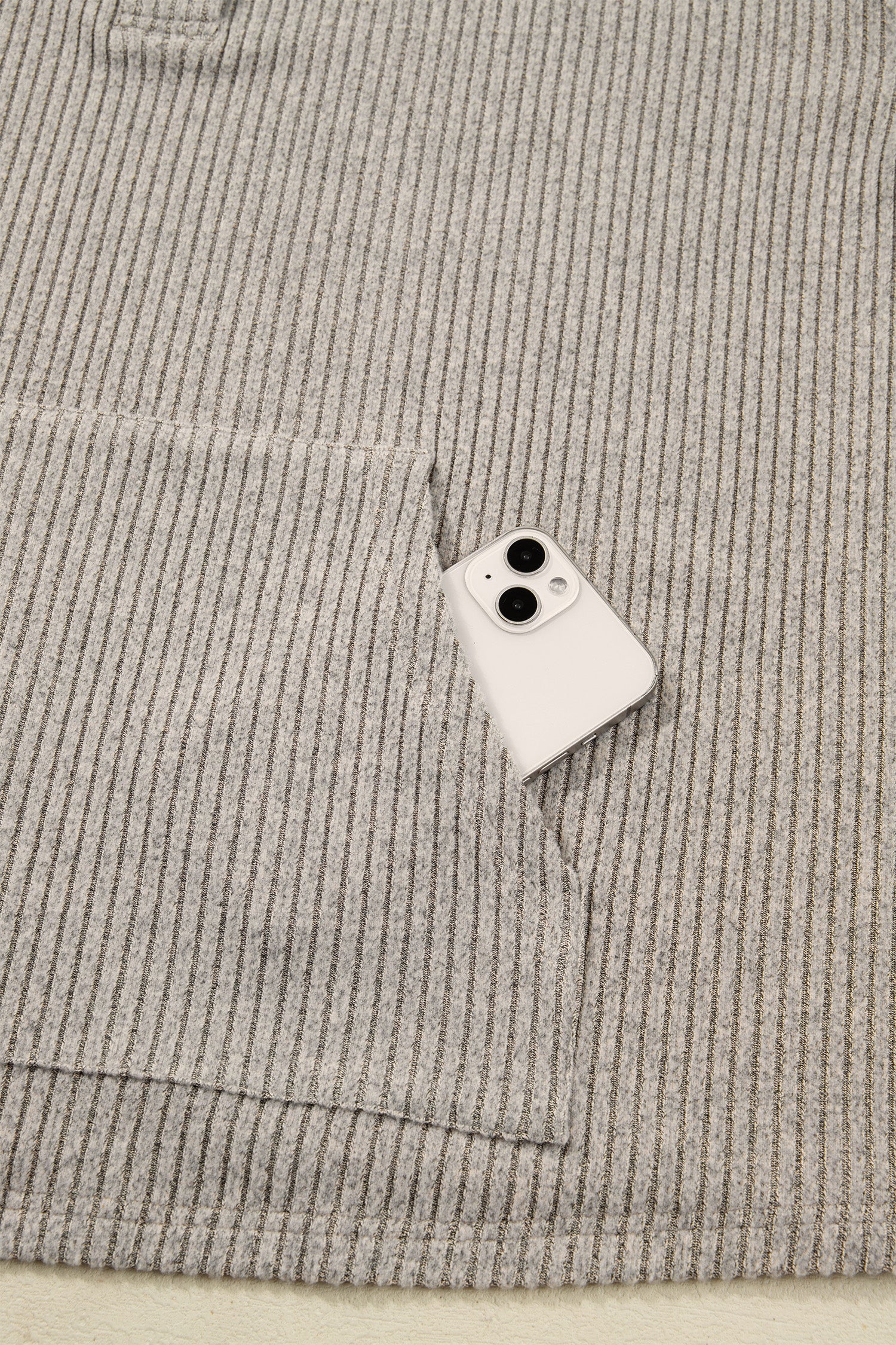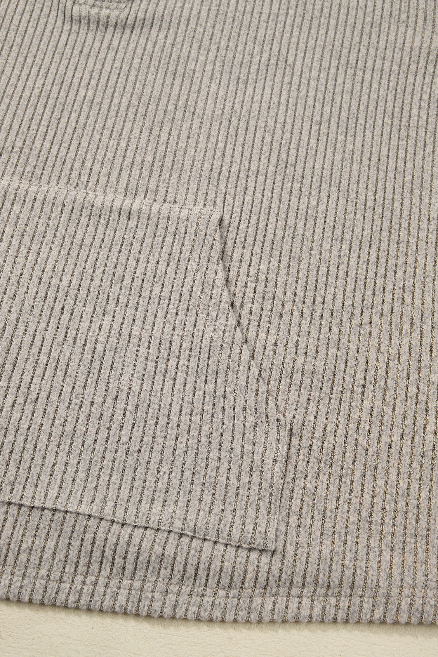 Simply Taupe Plus Size Ribbed Knit Kangaroo Pocket Henley Long Sleeve Top